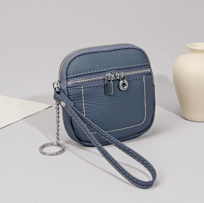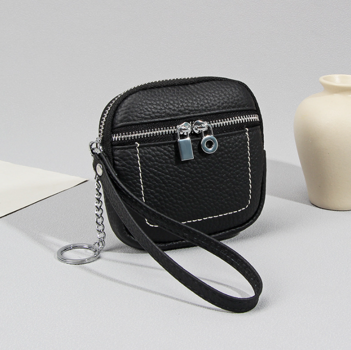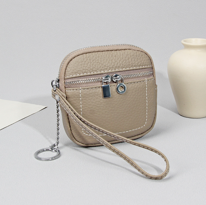 Nouveau Portefeuille Compact en Cuir de Vachette Véritable pour Femme 2026 avec Porte-Monnaie Mini et Porte-clés pour Rouge à Lèvres et Écouteurs