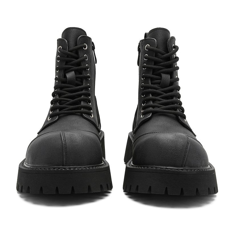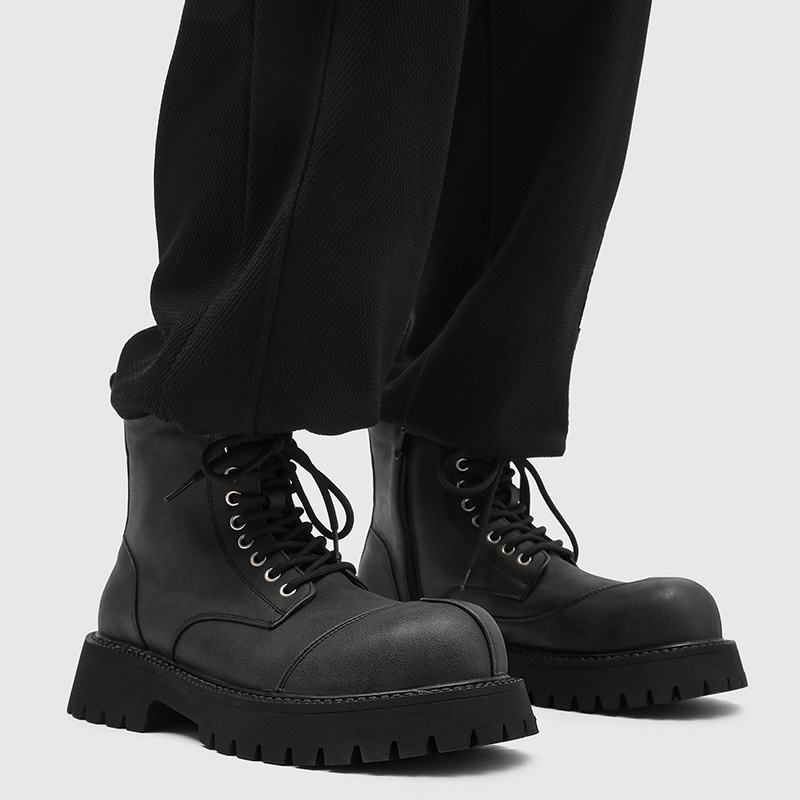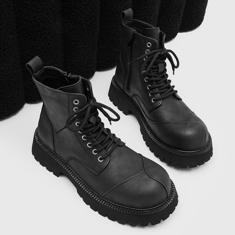 Bottes mi-mollet pour homme, design tendance 2026, automne, bout épais, semelle épaisse, hauteur accrue, bottes courtes tendance avec fermeture éclair