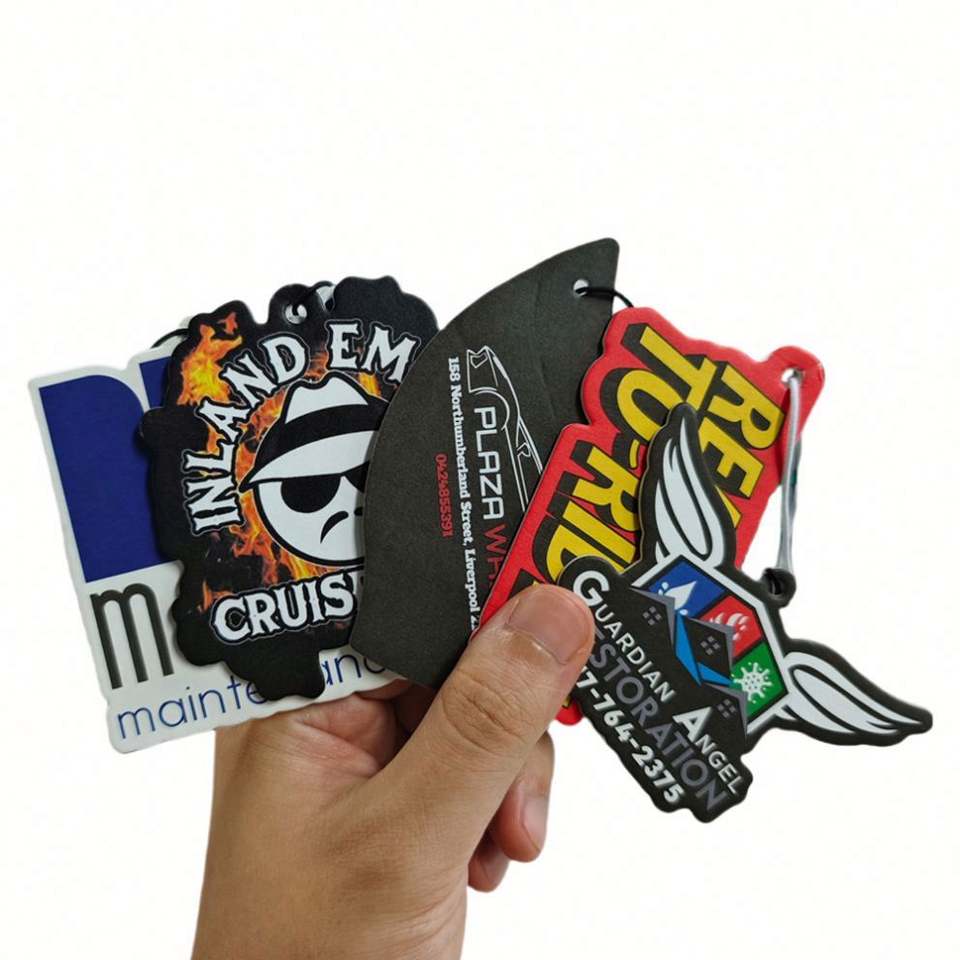 Désodorisant de voiture en papier personnalisé avec logo dessin animé, parfum au choix, OEM 2026, pas cher