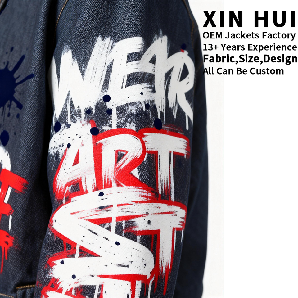 Veste de motard à col montant pour homme, impression personnalisée OEM 2026, graffiti streetwear, vente en gros, haute qualité, punk