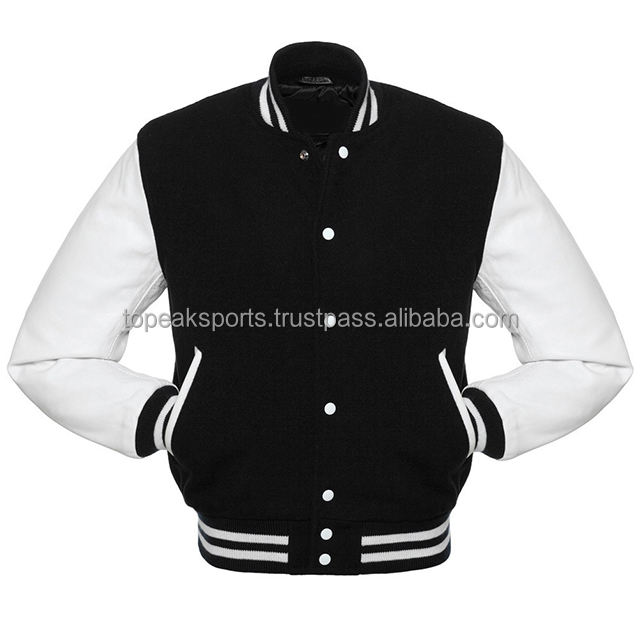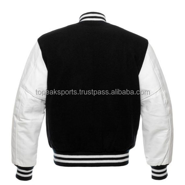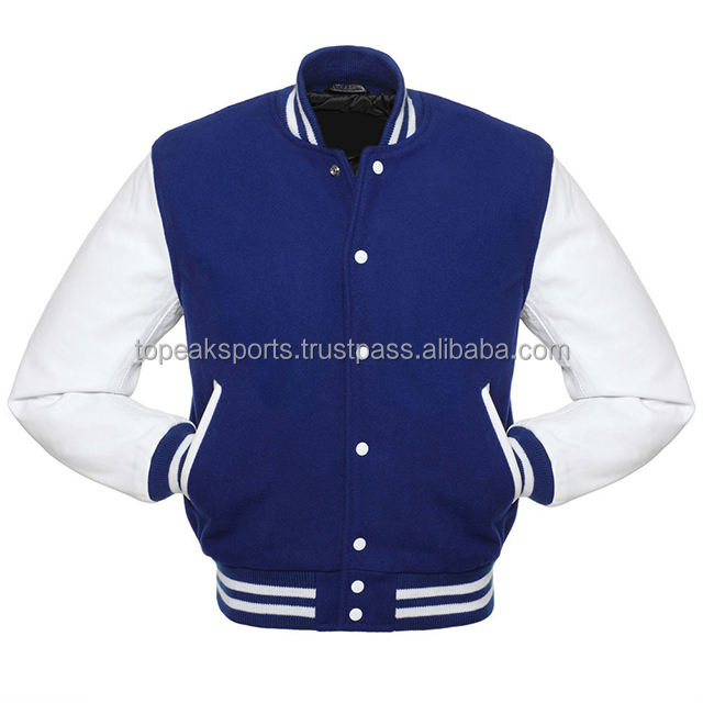 Blouson universitaire OEM 2026 en laine bleue avec manches en cuir blanc pour homme – 100 % haute qualité, faible MOQ, personnalisable, blousons chauffants
