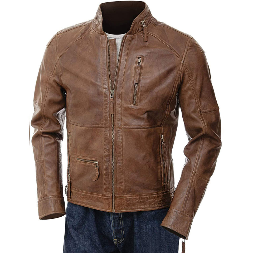 Veste en cuir noir à manches longues pour homme, col montant, service OEM 2026, produit d'hiver pour homme