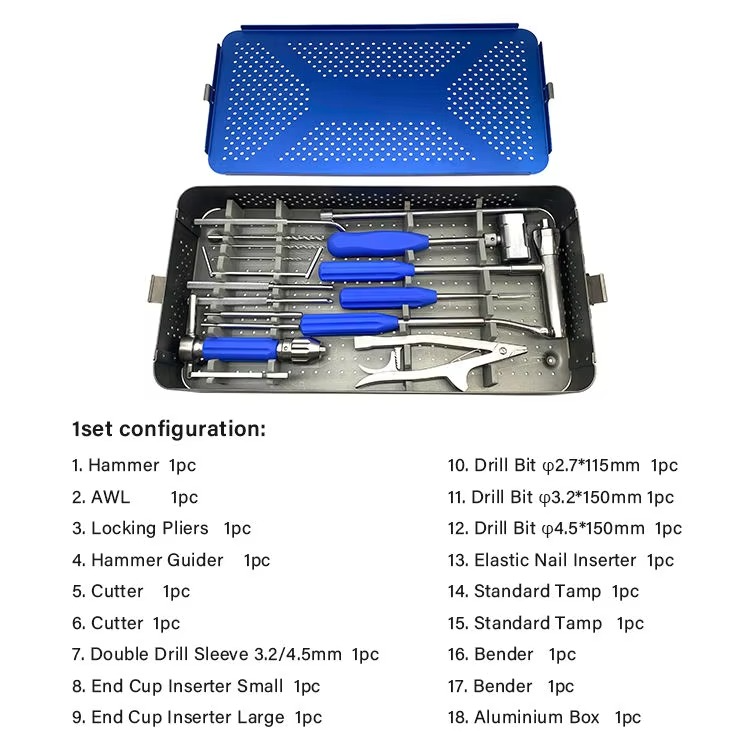2026 Instruments orthopédiques pour clouage élastique, Kit d'instruments de clouage, Clouage intramédullaire élastique stable
