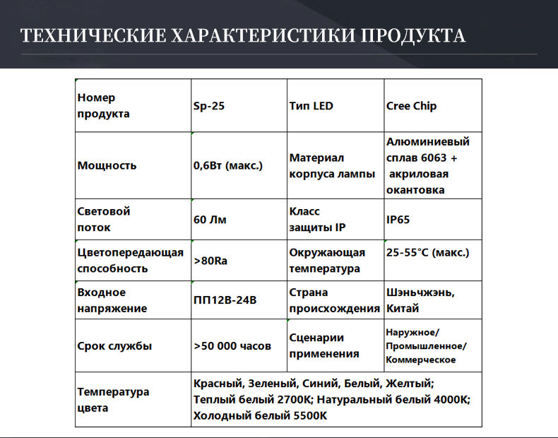2700K (blanc chaud doux), 4100K (blanc neutre), 5000K (lumière du jour)La température de couleur (le TDC)