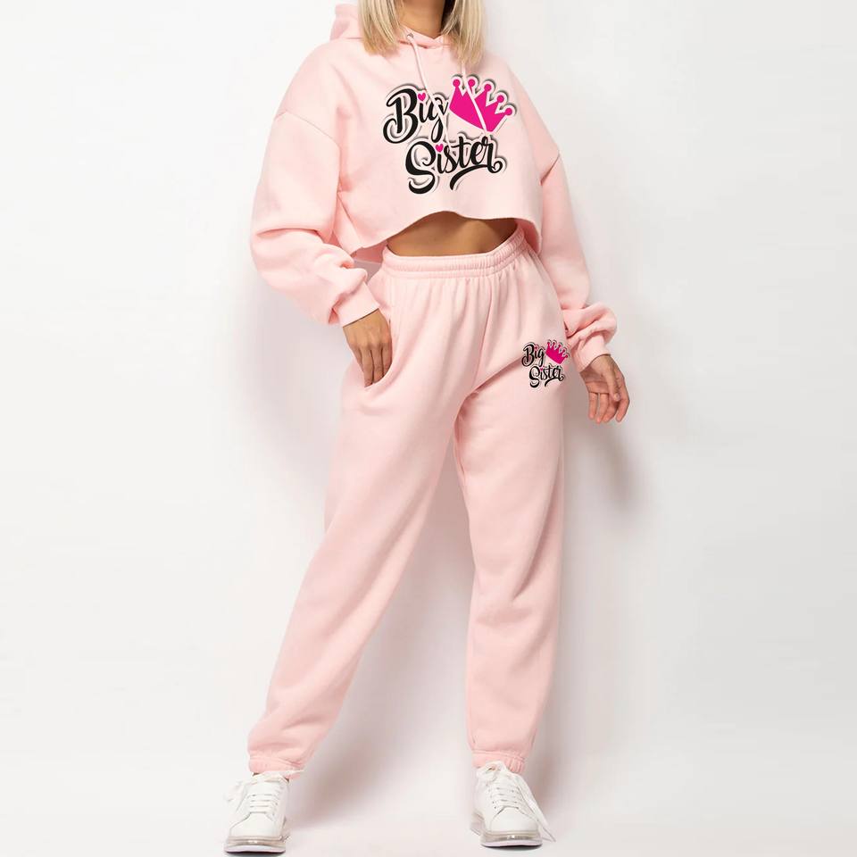 Ensemble de survêtement vintage grande taille pour femme, haut court à capuche en coton uni, style streetwear, avec fermeture éclair et impression de logo personnalisée