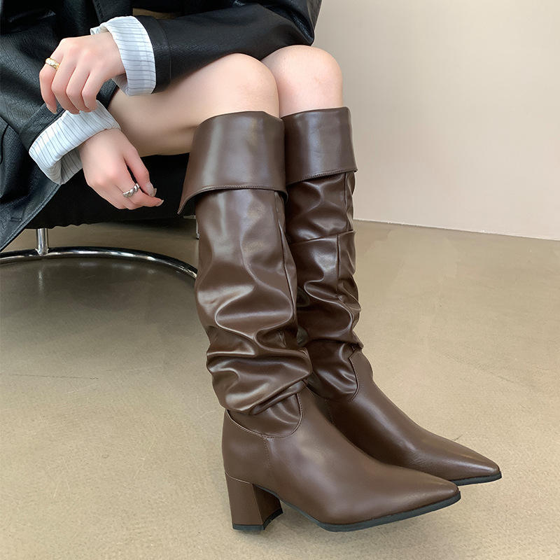 Bottes hautes à bout pointu et froncées, talon aiguille, motif serpent, pour femme, collection 2026