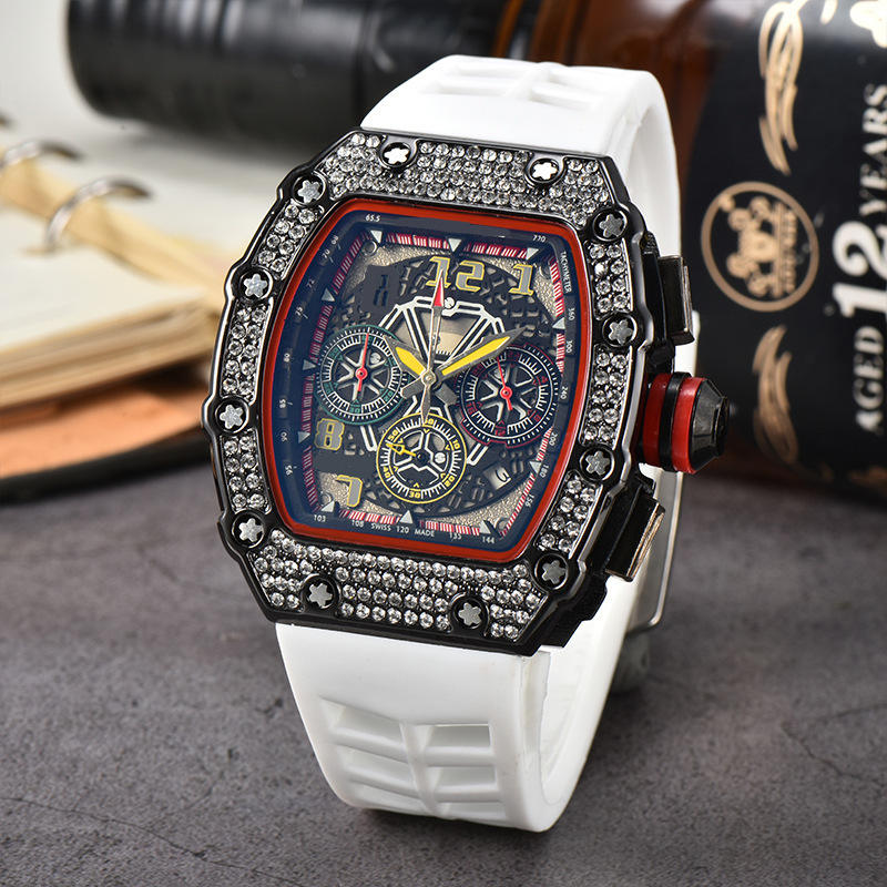 Montre populaire 2026 en forme de tonneau de vin incrustée de diamants, multifonctionnelle à six aiguilles avec secondes visibles, pour hommes et femmes