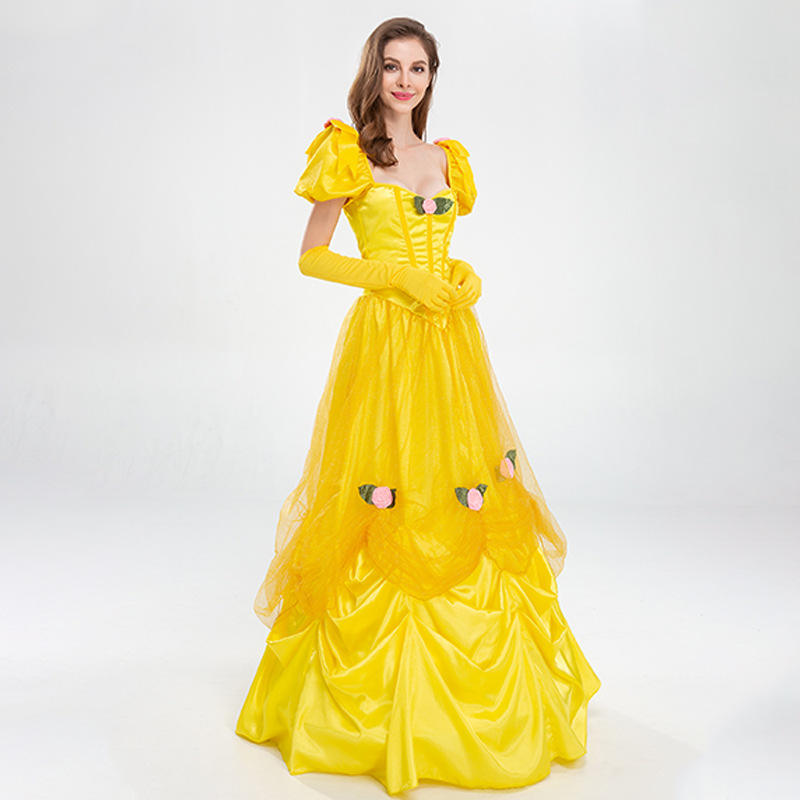 2026 RUIKE Halloween Carnaval Costume de Cosplay Adulte La Belle et la Bête Robe de Princesse pour Spectacle Scénique et Jeu de Rôle