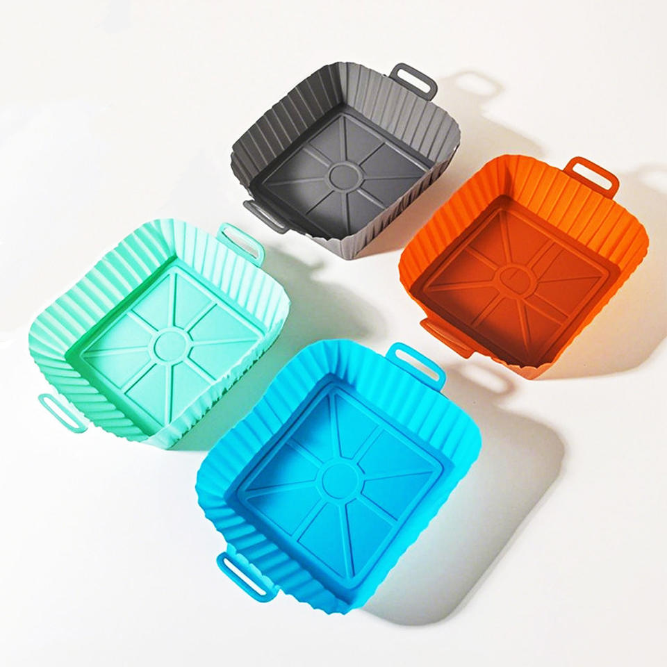 2026 Pot en silicone rectangulaire pour friteuse à air, qualité alimentaire, résistant à la chaleur, nettoyage facile, revêtement antiadhésif pour friteuses à air