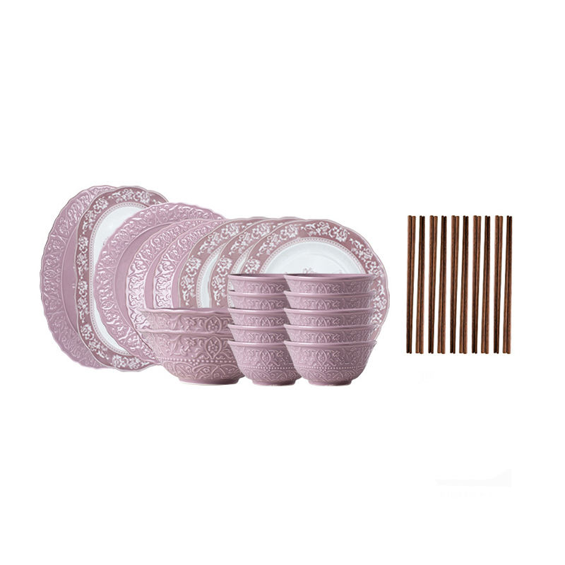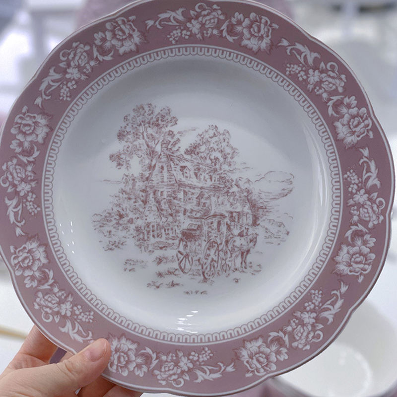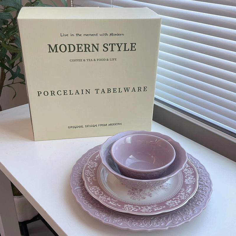 Service de vaisselle en céramique violette style français romantique 2026 avec boîte cadeau pour 2, 4, 6 ou 10 personnes – Assiettes et bols