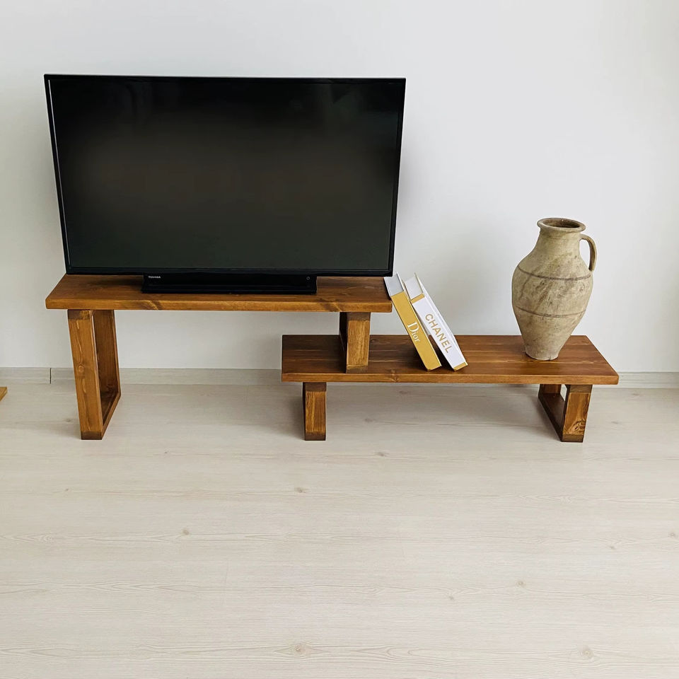 Meuble TV rustique en bois massif 2026 avec étagère de rangement pour salon et divertissement à domicile
