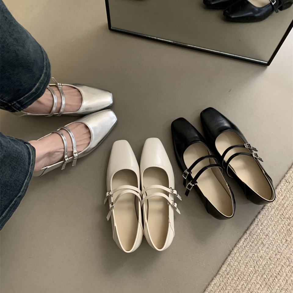 Nouvelles Chaussures Mary Jane Coréennes Printemps-Automne 2026 pour Femme, à Bout Carré, Double Boucle, Talon Carré Épais, Escarpins à Bouche Peu Profonde pour Assortir
