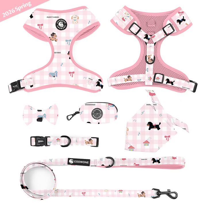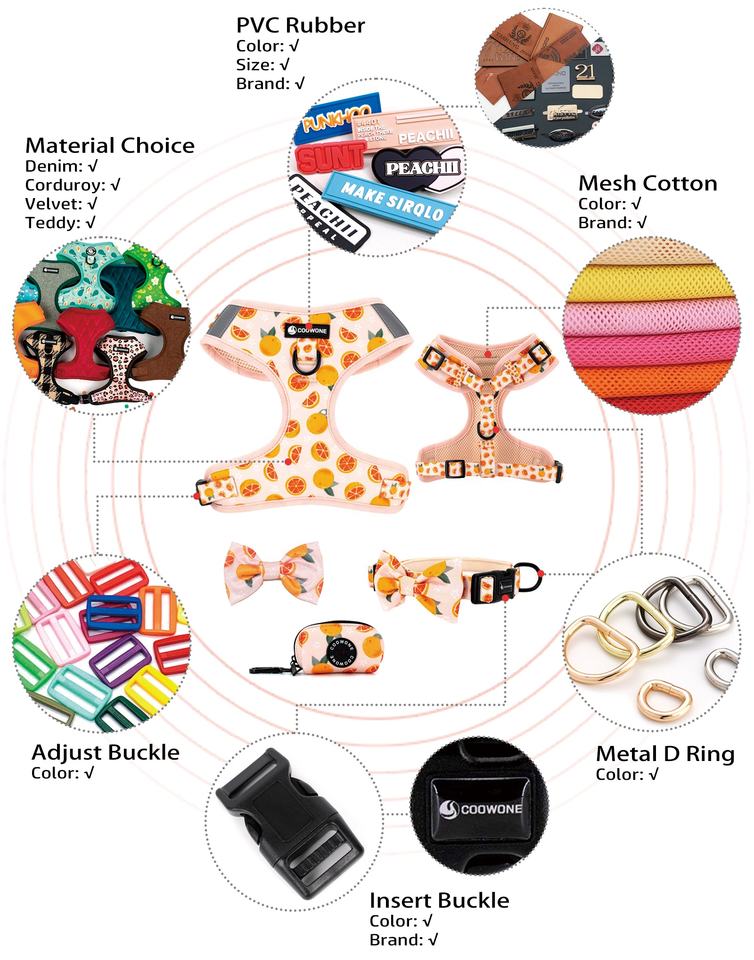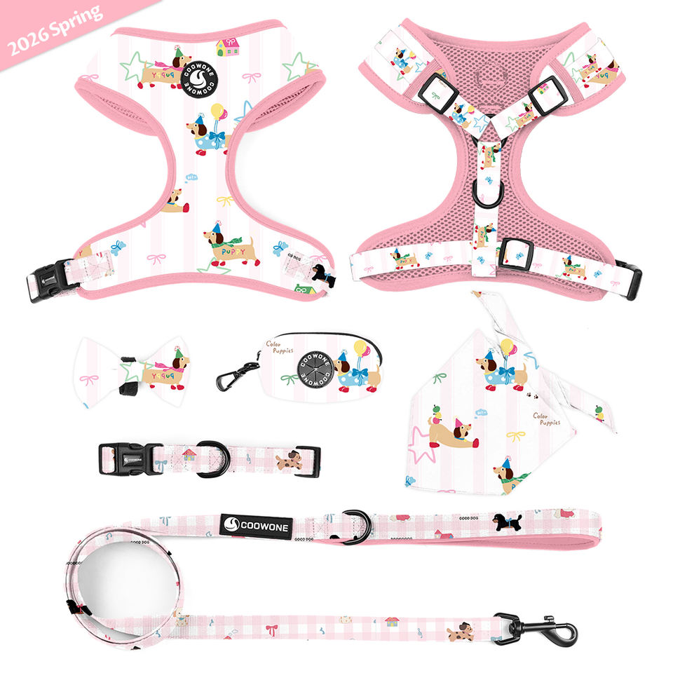 Ensemble de harnais et de laisse pour chien teckel personnalisé avec impression printemps 2026, logo, harnais réglable pour chien, laisse, harnais d'entraînement pour chiot