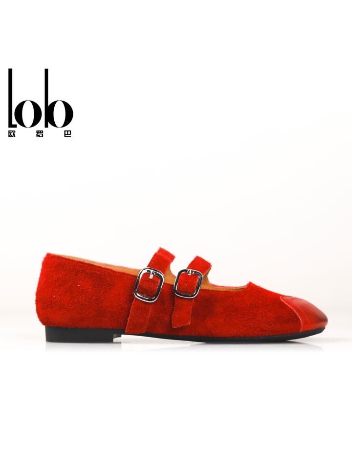 Chaussures Mary Jane en cuir de vachette faites à la main, collection Printemps 2026, confortables, plates, couleur unie, à double bride fermée, légères