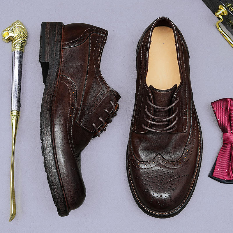 Chaussures habillées formelles pour hommes à bout carré, en cuir véritable, avec semelle extérieure en caoutchouc antidérapante, collection Printemps 2026 – Nouveauté Goodyear Lace