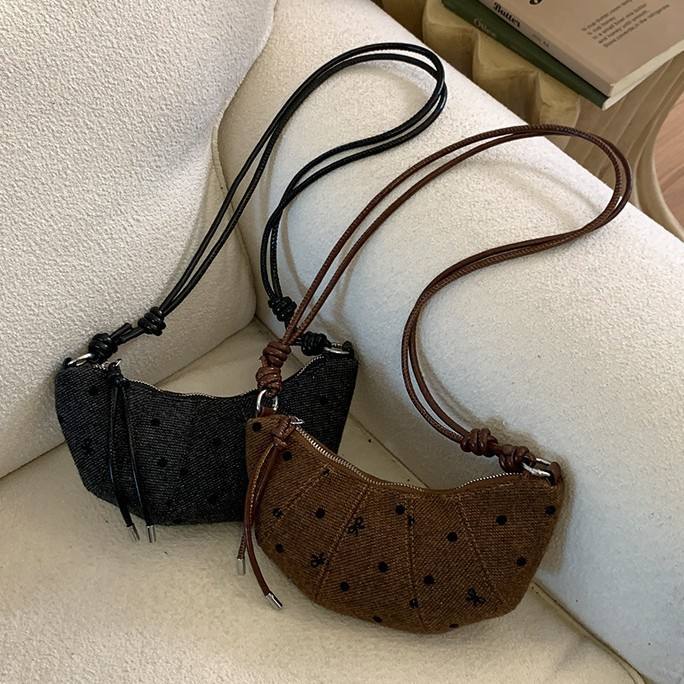 2026 Spring New Bow Polka Dot Croissant Bag Women Premium Niche Versatile Casual Single Shoulder Crossbody Messenger Bags