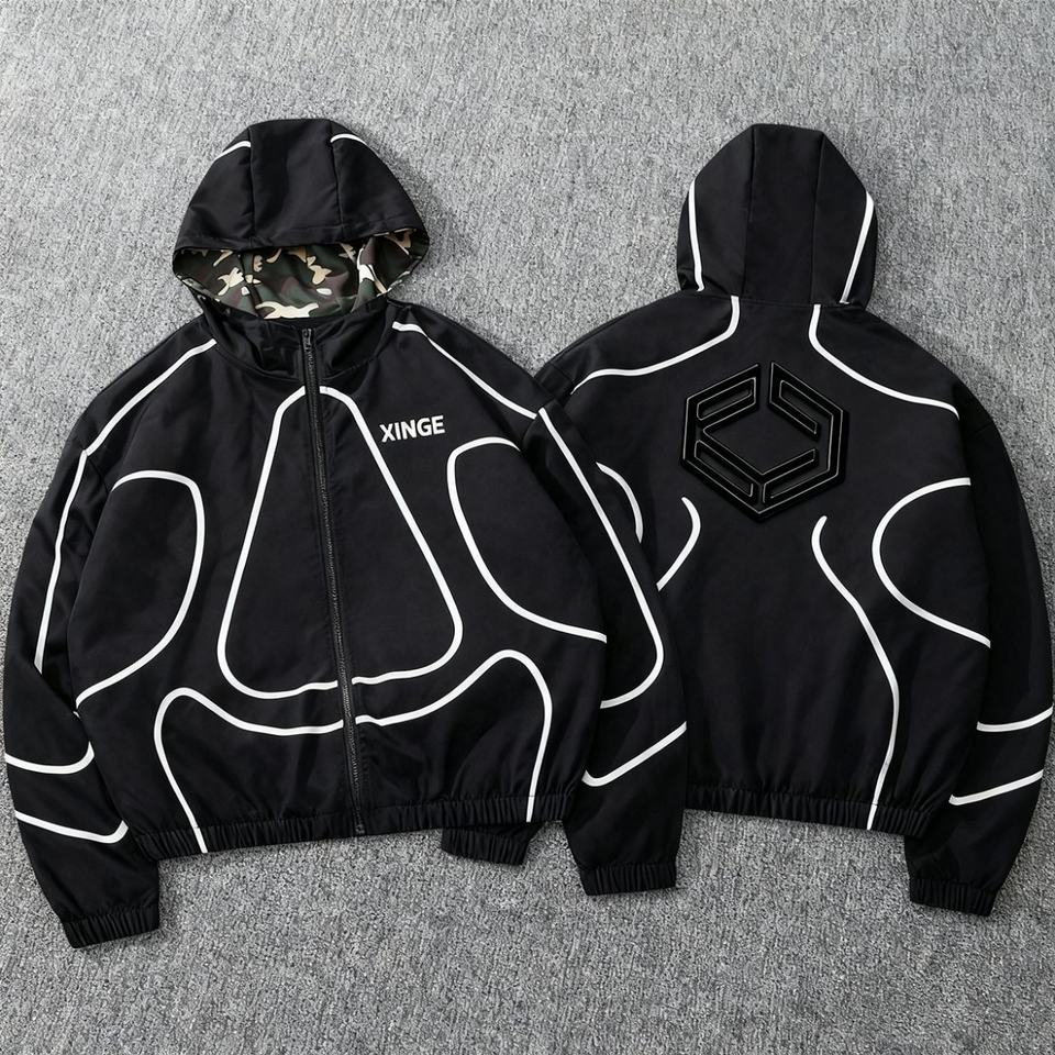 Nouvelle collection Hiver 2026 : Blouson à capuche oversize en nylon imperméable, style streetwear rétro avec broderie 3D et patchwork – Vente flash