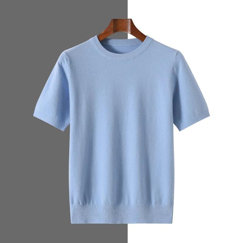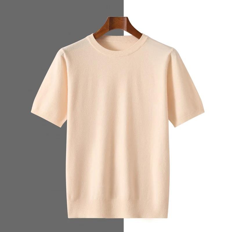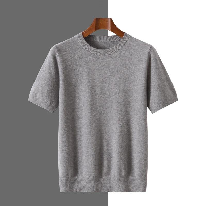 Nouveau T-shirt en laine tricotée pour homme, col rond, manches courtes, coupe ample, pull décontracté, couleur unie, collection Printemps/Été 2026