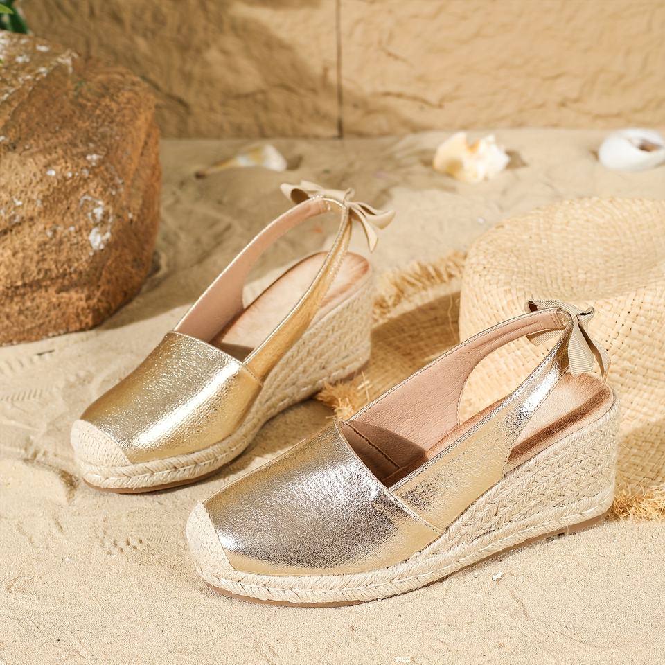 Sandales compensées pour femmes printemps 2026, espadrilles à plateforme tissées dorées, chaussures décontractées pour femmes style vacances
