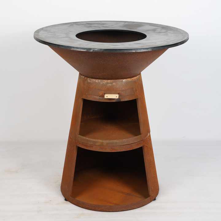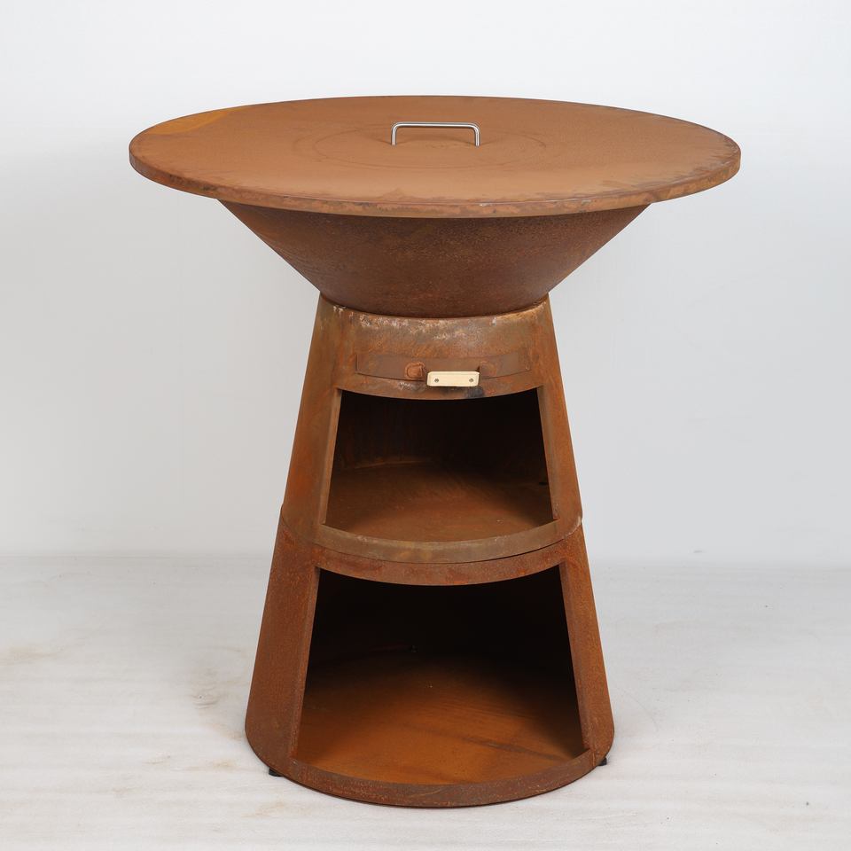 Brasero Plancha de Patio 2026 Élégant et Simple à Structure KD, en Acier Corten Durable, avec Bac à Bois et Rangement pour Bûches