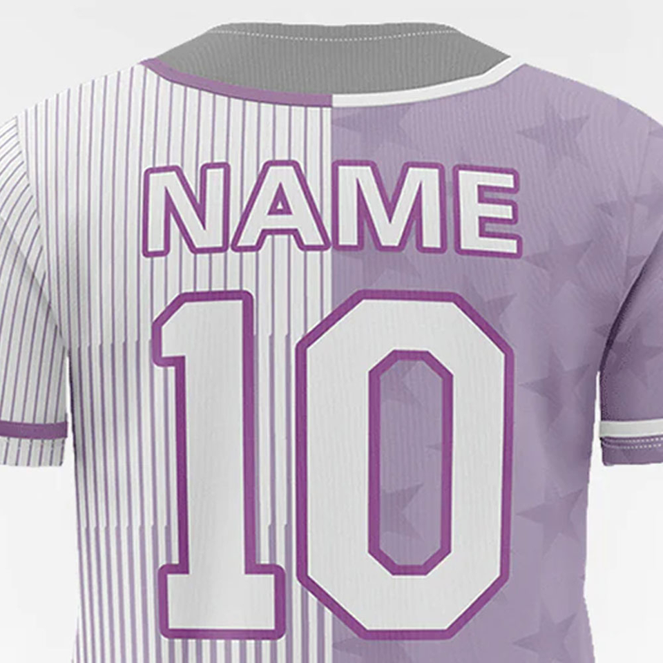 Maillot de baseball pour homme 2026 en polyester respirant de haute qualité, imprimé sérigraphié, personnalisé, à rayures fines violettes
