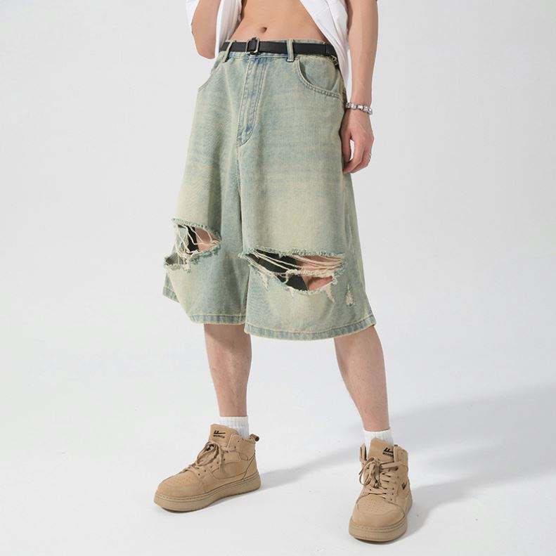 Nouveau style été 2026 – Short en jean rétro pour homme – Short en jean droit ample et tendance pour jeune homme