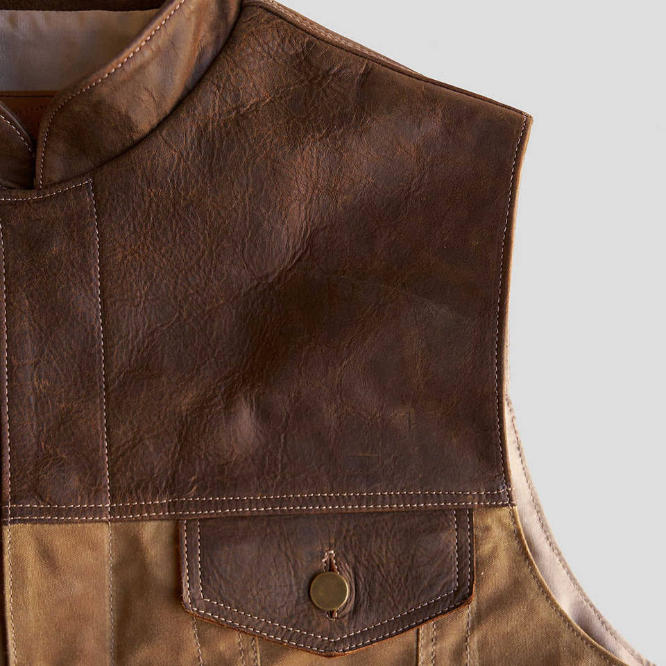 Gilet en cuir de moto pour homme, en cuir de vache véritable vintage, respirant, crocheté, personnalisé, marron, hiver, 2026 TOP NOTCH