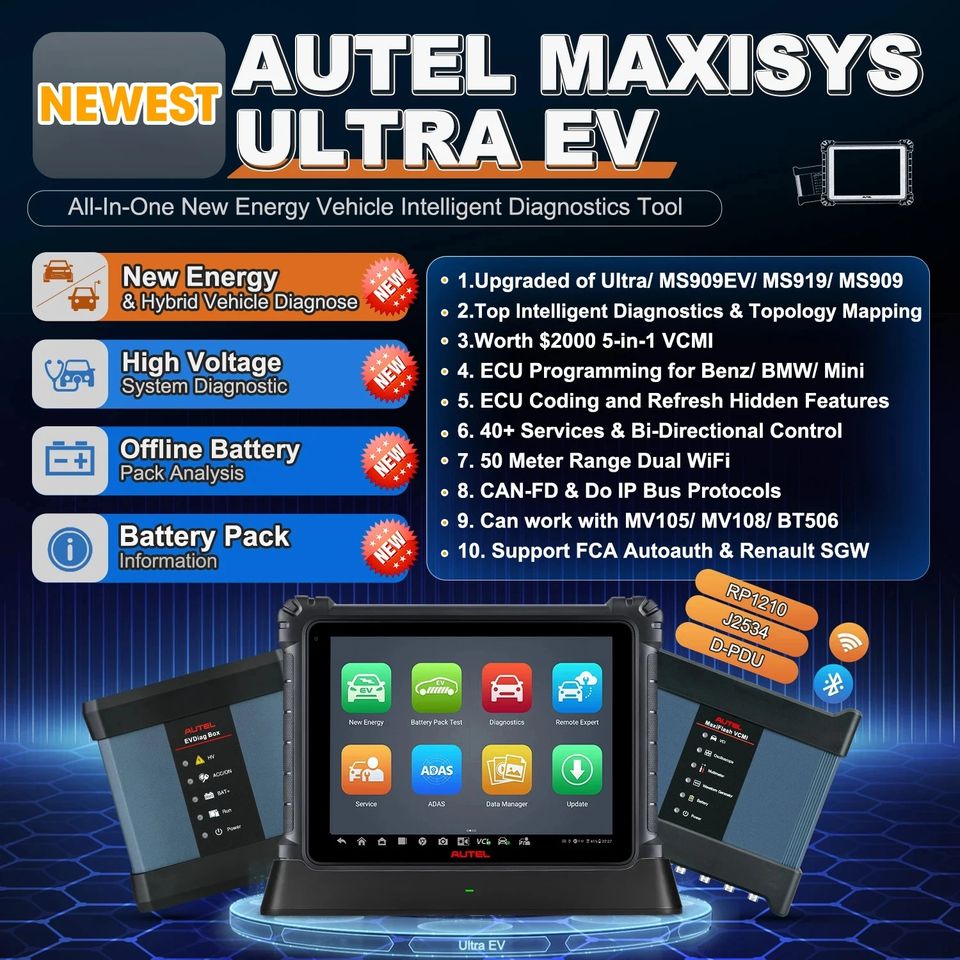 Outil de diagnostic intelligent pour véhicules électriques 2026 Autel MaxiSYS Ultra EV Upof MS909 MS919 ultra s2 avec analyse haute tension et de batteries