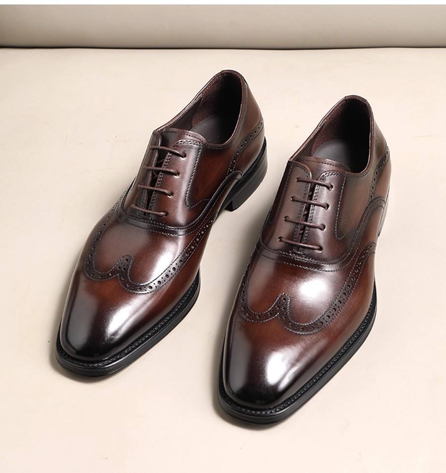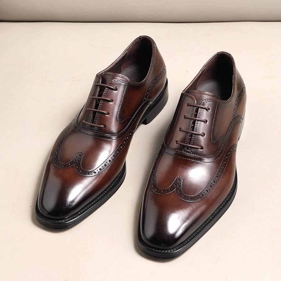 Chaussures pour hommes 2026 haut de gamme en cuir de vachette multicouche, à bout carré, légères, antidérapantes, respirantes, de haute qualité, grande taille, à lacets