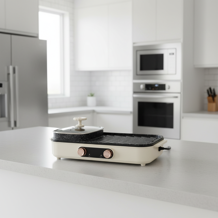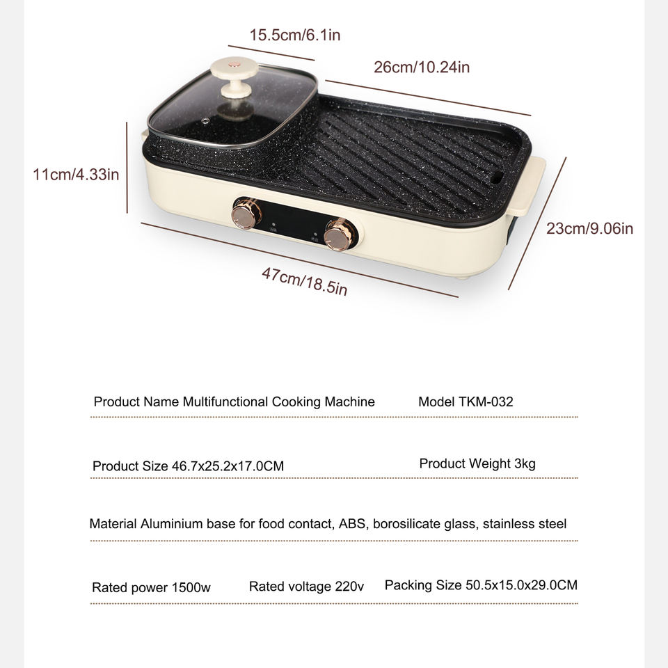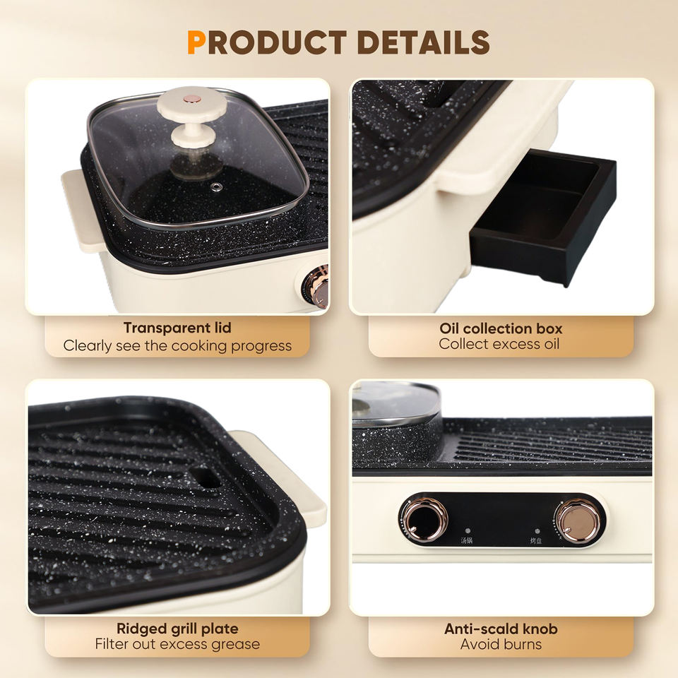 Dismountable Oil Collector, Non-Stick Cooking Surface, Temperature Control, Smokelessfunction