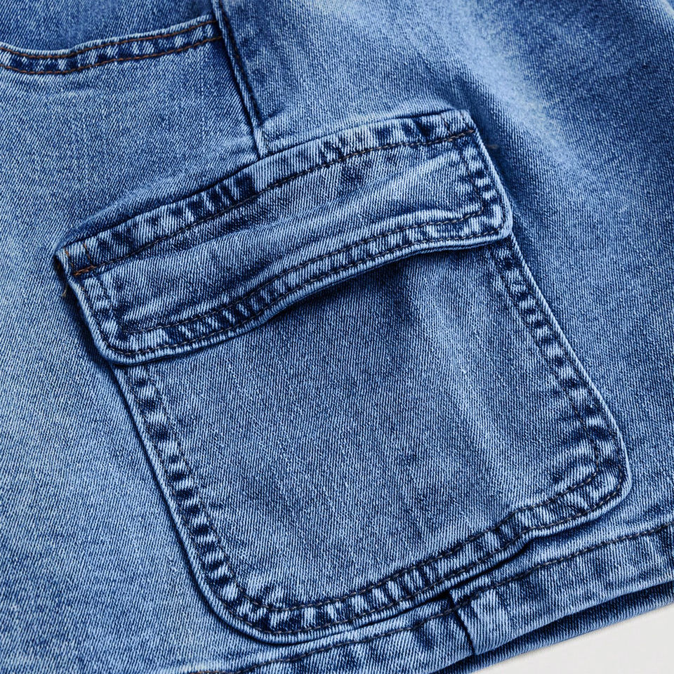 Jupe en jean semi-extensible délavée à l'acide, style cargo classique avec ceinture et multiples poches, modèle tendance HSI 2026