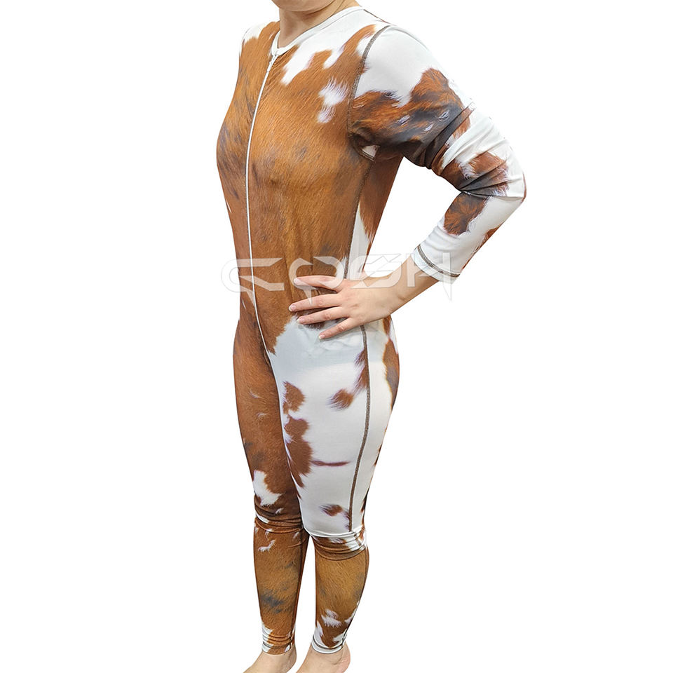 Tendance 2026 Combinaison moulante style western à motif vache pour femme, streetwear d'extérieur, fournisseur
