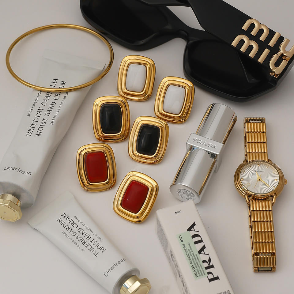 Product Name:emerald earring Exaggerated Geometric Vintage Brass flat back stud