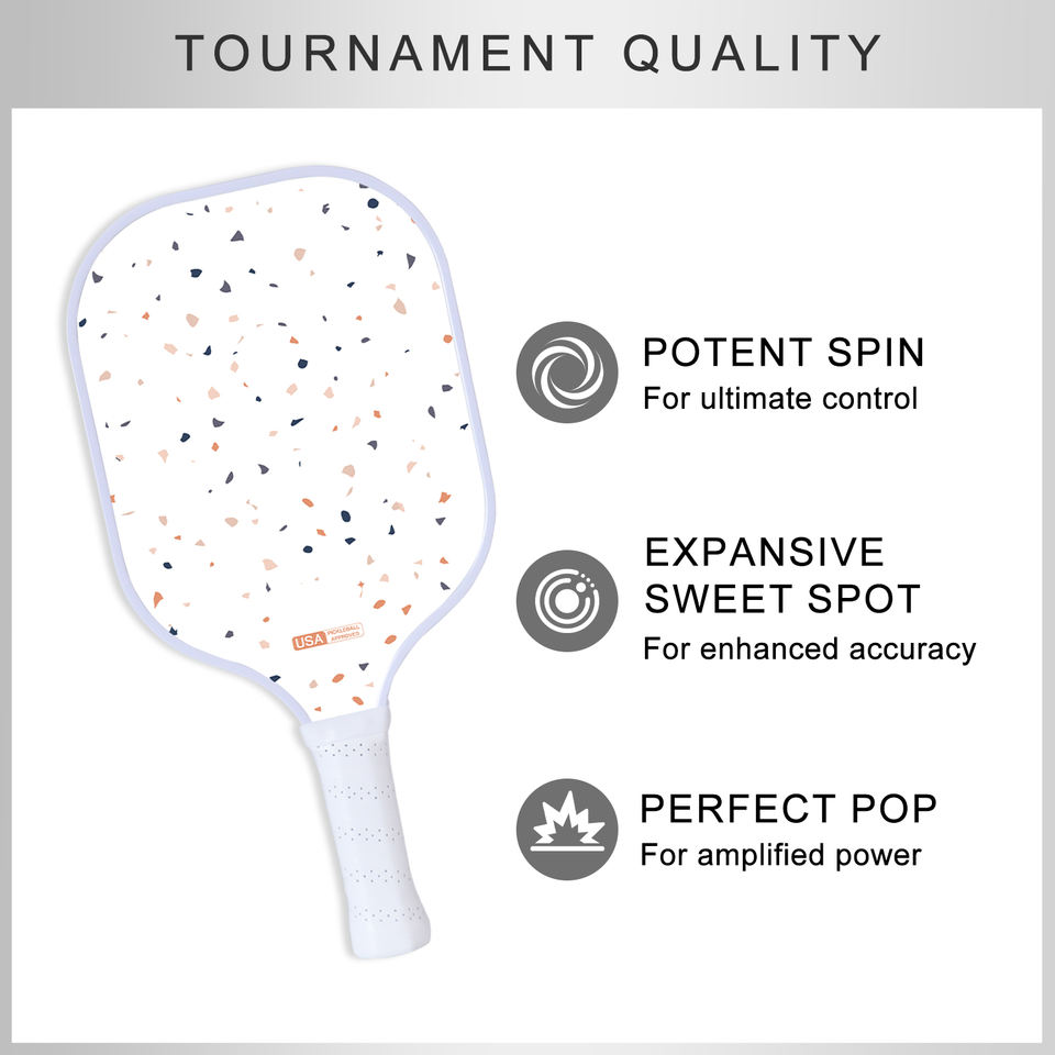 Raquette de pickleball FitSpark Macarons approuvée USAPA en fibre de carbone, noyau en nid d'abeille de 16 mm, design sans bordure, durable, pour le divertissement
