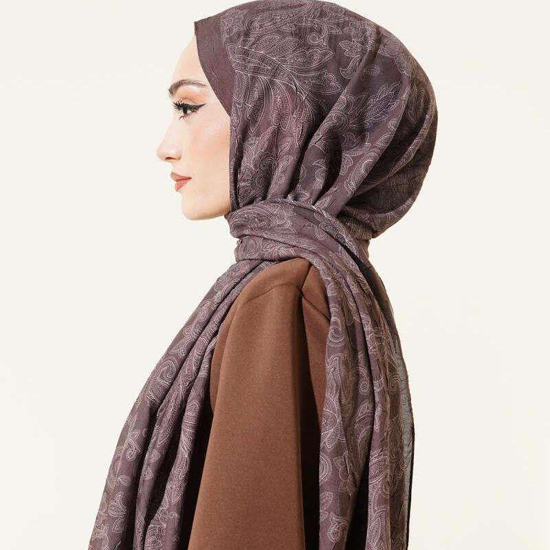 Voile musulman polyvalent personnalisé avec logo 2026 – Vente en gros, respirant, 4 saisons, élégant, modeste, imprimé, en modal pour femme