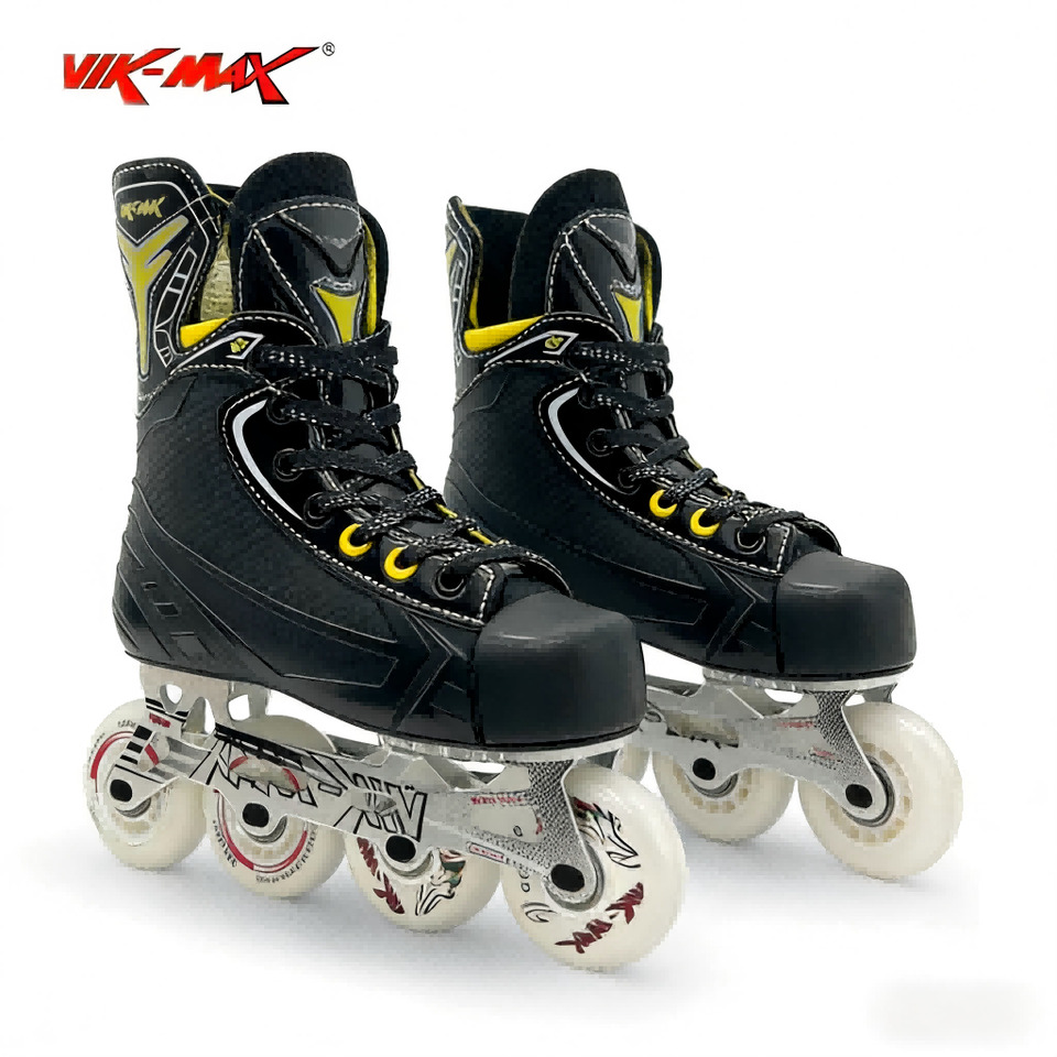 Patins à roulettes de hockey en ligne Vik-Max 2026 de qualité supérieure – Châssis en aluminium CNC HI/LO avec roues de dureté 76A SHR