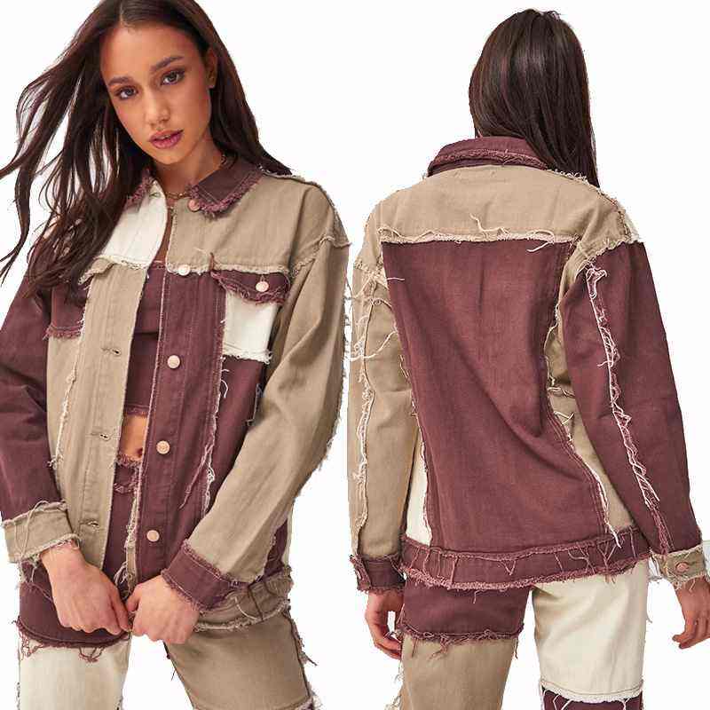 Nouvelle veste en jean patchwork vintage 2026 pour femme, fermeture à bouton unique, longue, décontractée, style européen et américain, pour le commerce extérieur