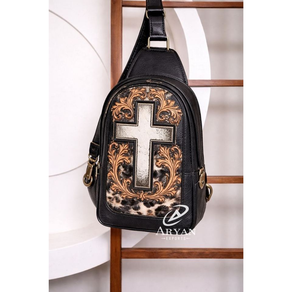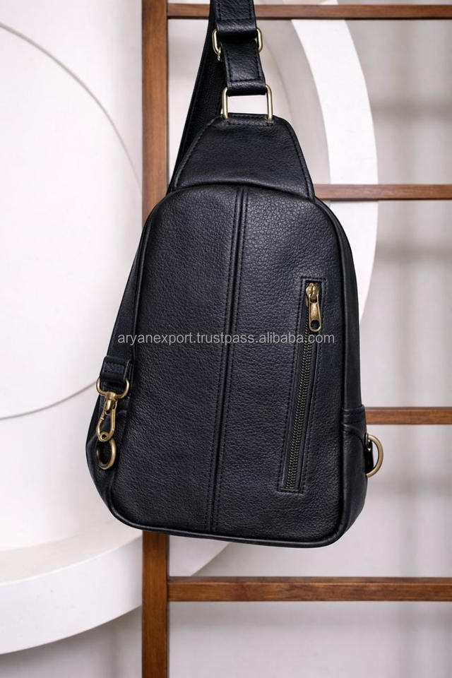 Sac de poitrine en cuir de vachette, travaillé à la main