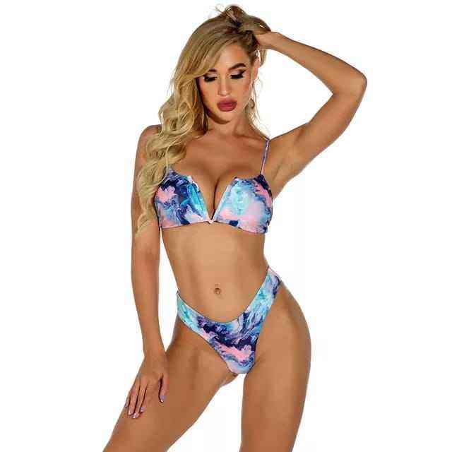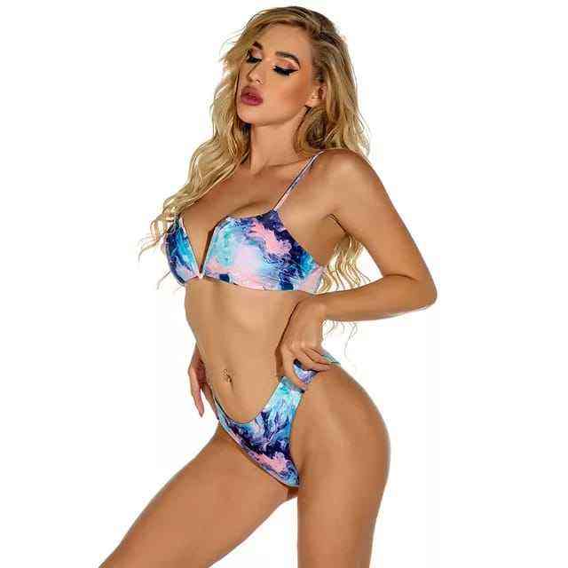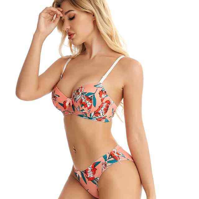 Ensemble bikini 3 pièces sexy pour femme, design personnalisé, avec soutien-gorge push-up et logo tissé sur le devant, collection 2026 – Vente en gros