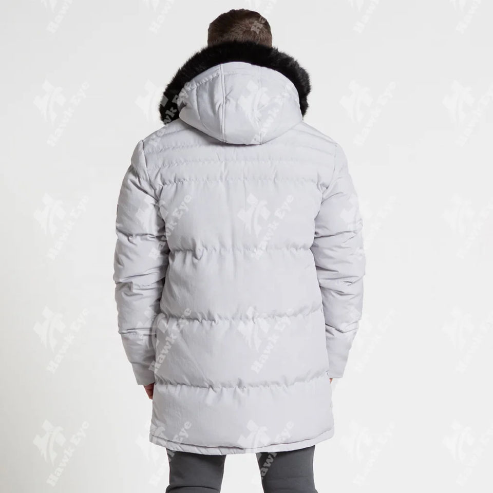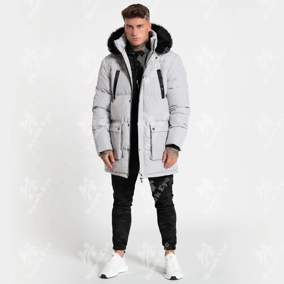 Veste longue en polaire personnalisée pour homme, noire, en polyester, avec rembourrage en coton respirant, col montant et logo frontal – Collection Hiver 2026 (Vente en gros)
