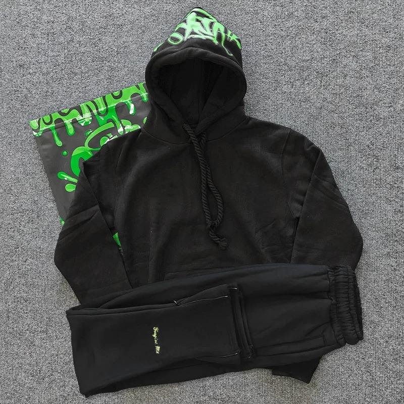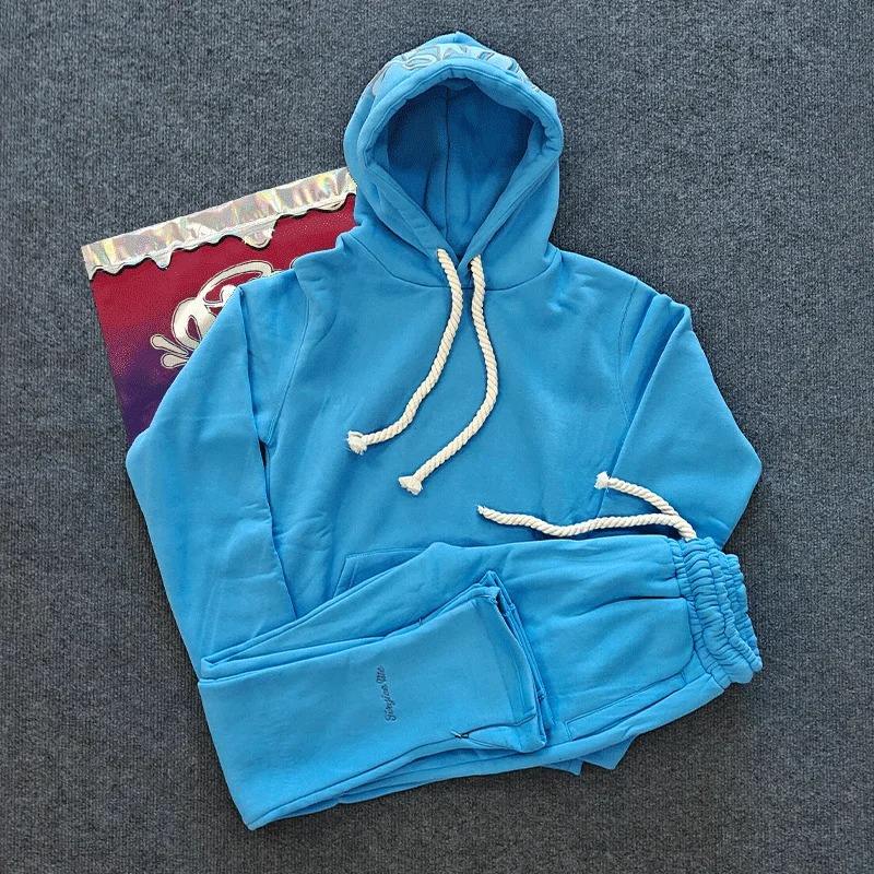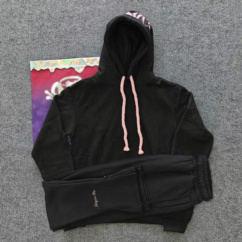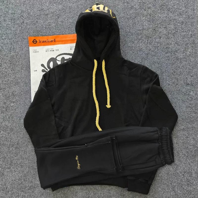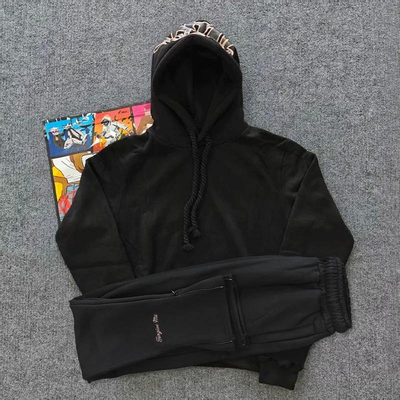 Ensemble décontracté hiver 2026 brodé style hip-hop urbain pour hommes et femmes : sweat à capuche en coton et pantalon long
