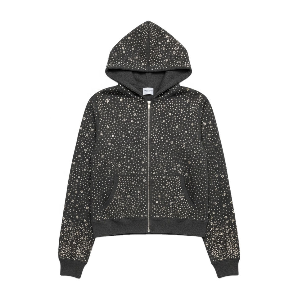 Sweat à capuche zippé unisexe Glam surdimensionné 2026 | Mélange de coton de qualité supérieure | Veste brodée à blocs de couleur pour l'automne, OEM