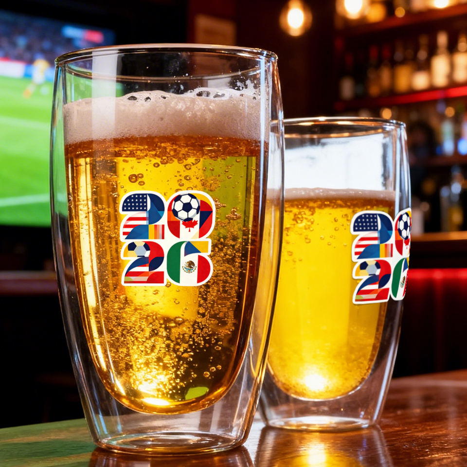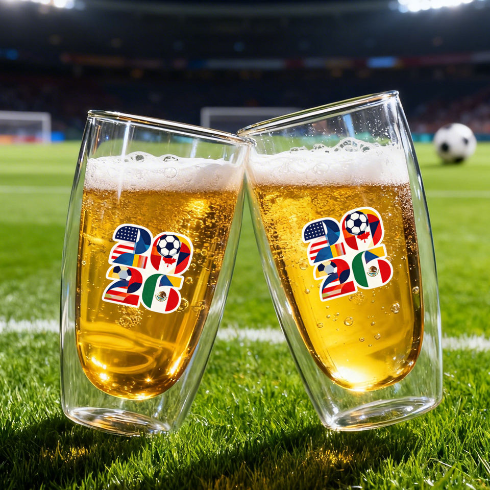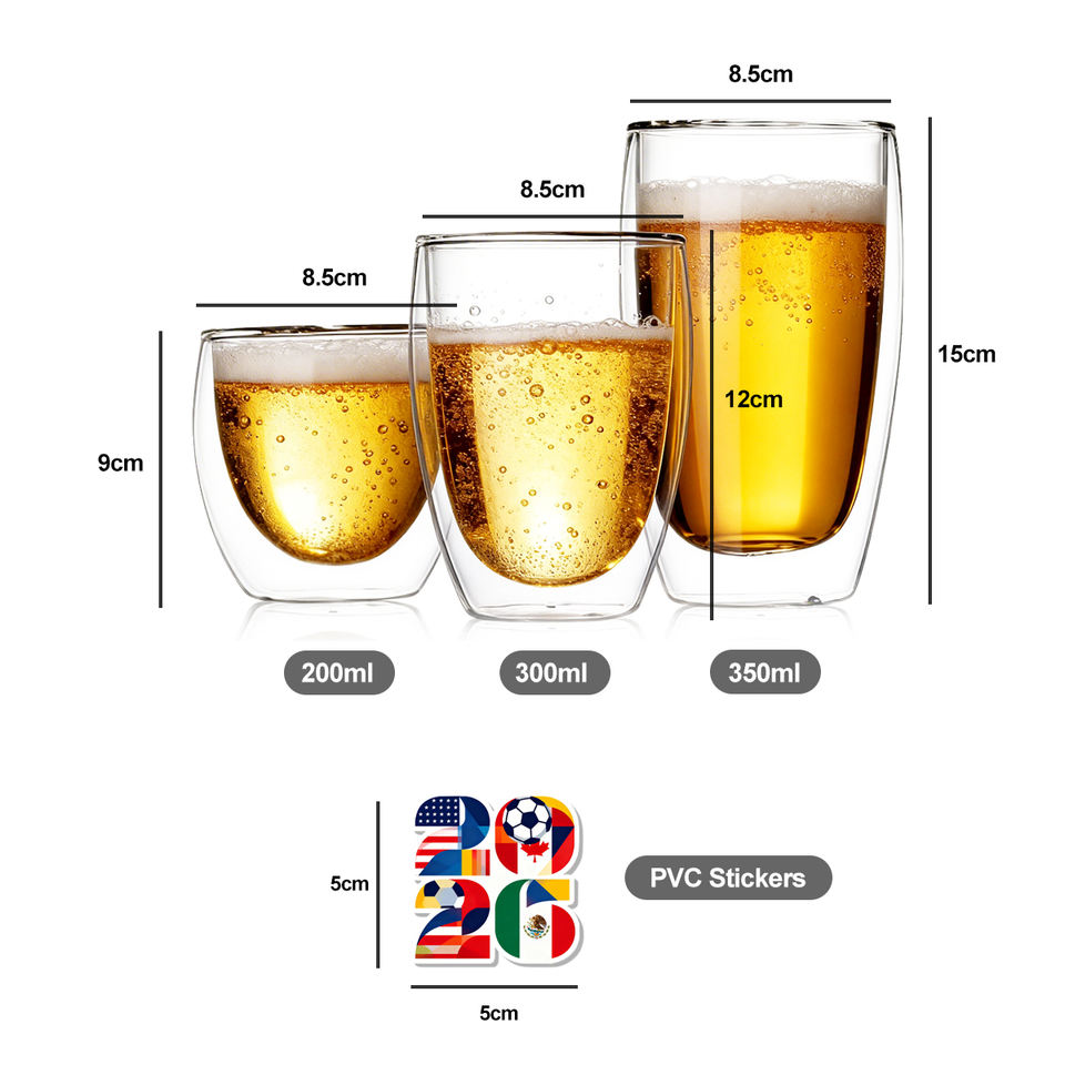 Nouvelle conception mondiale 2026 – Chope à bière en verre borosilicate à double paroi, transparente, pour matchs de football, 200ml/300ml/350ml