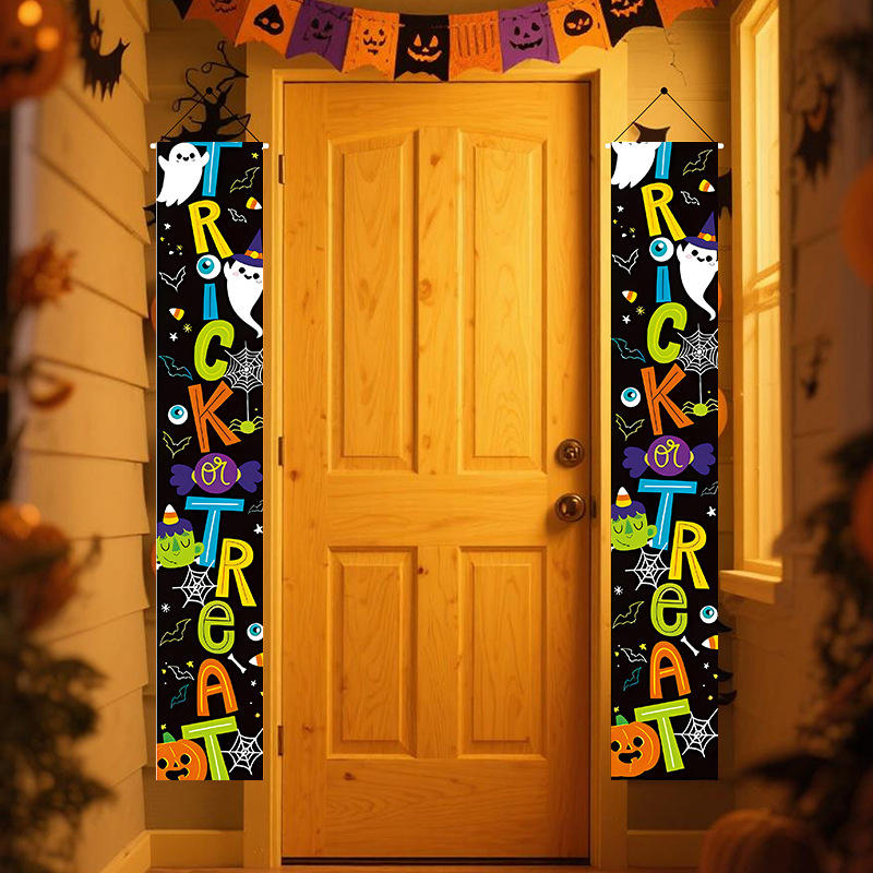 2026 New Halloween Outdoor Ghost Festival Decorative Door Curtain Couplet Banner Aluminum Flagpole Factory Direct Sales