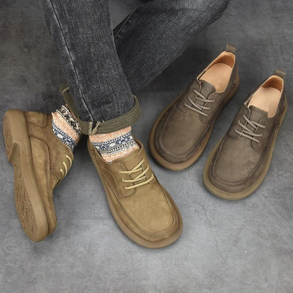 Chaussures pour hommes 2026 confortables à bout large, respirantes, rétro, décontractées, à lacets, semelle souple, polyvalentes, tendance, en cuir véritable