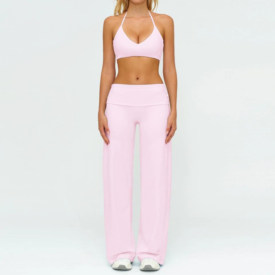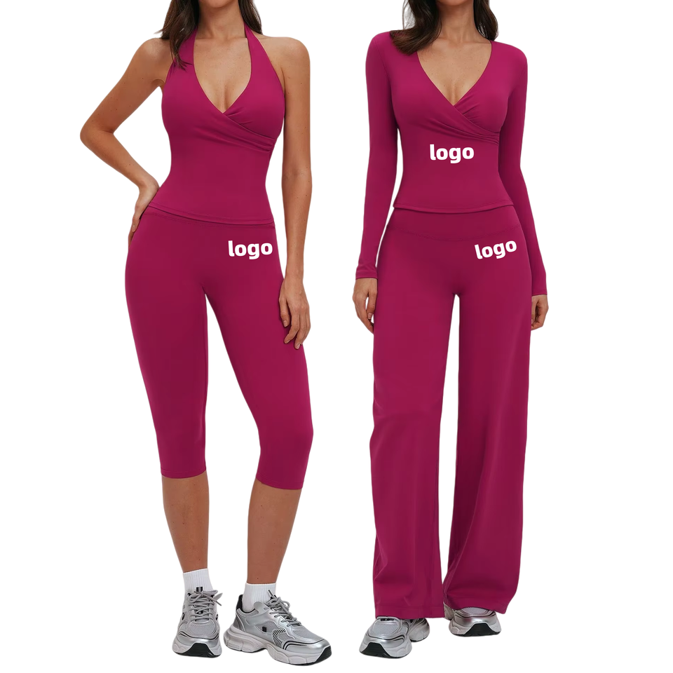 Ensemble deux pièces de yoga respirant et à séchage rapide, couleur unie, avec logo personnalisé, taille haute élastique, idéal pour le fitness, la course et le sport – Collection 2026 (vente en gros)