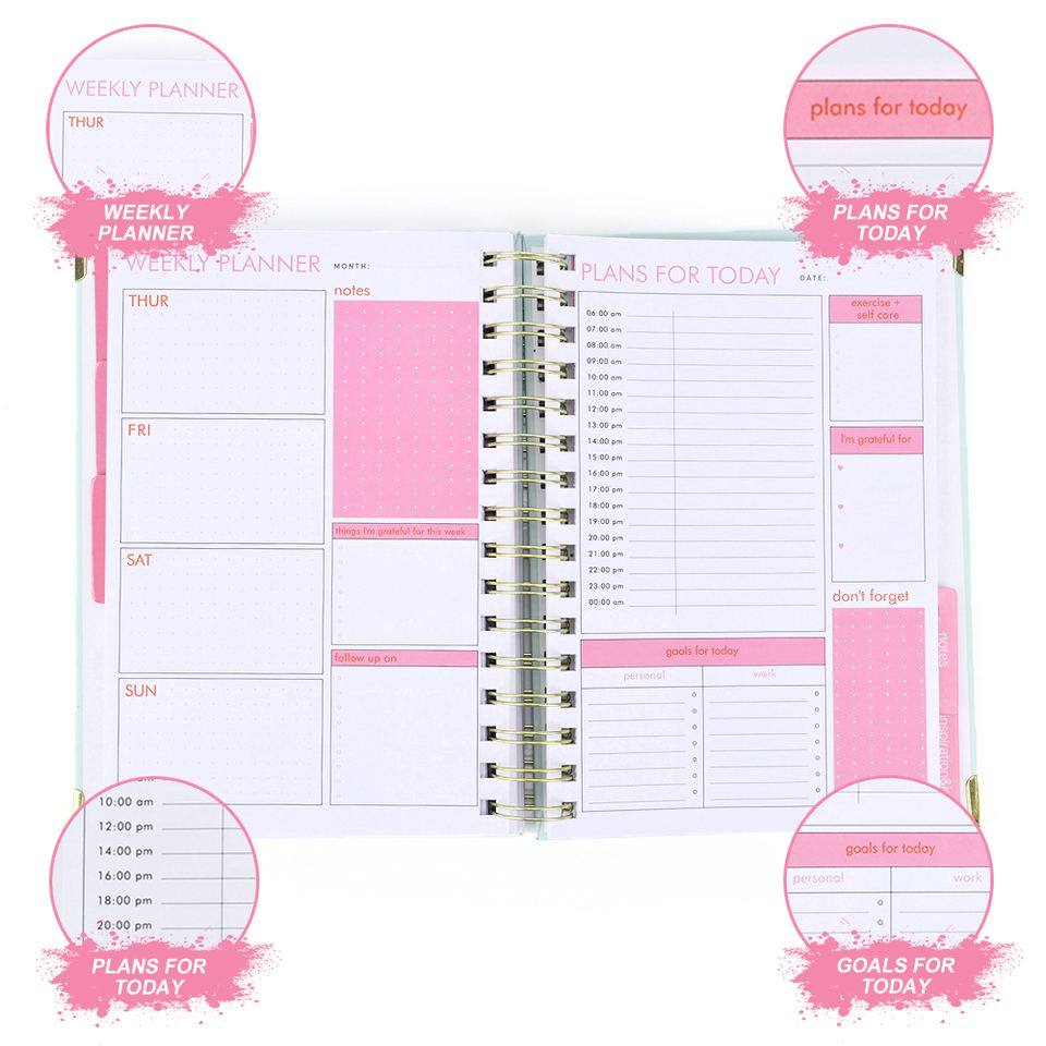 Agenda 2027 2028 personnalisé avec impression sur mesure, organiseurs à couverture rigide, agenda hebdomadaire et mensuel non daté, planificateur quotidien à spirale pour objectifs quotidiens