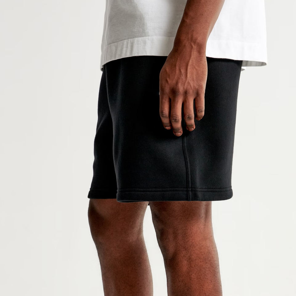 Custom Low MOQ Custom Logo Elasticated Waistband Oversize Shorts Men Streetwear Black Cotton Fleece Shorts