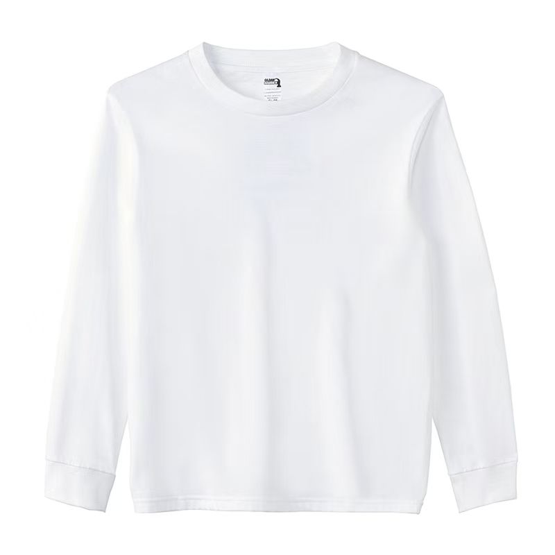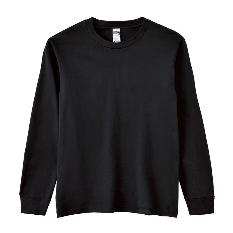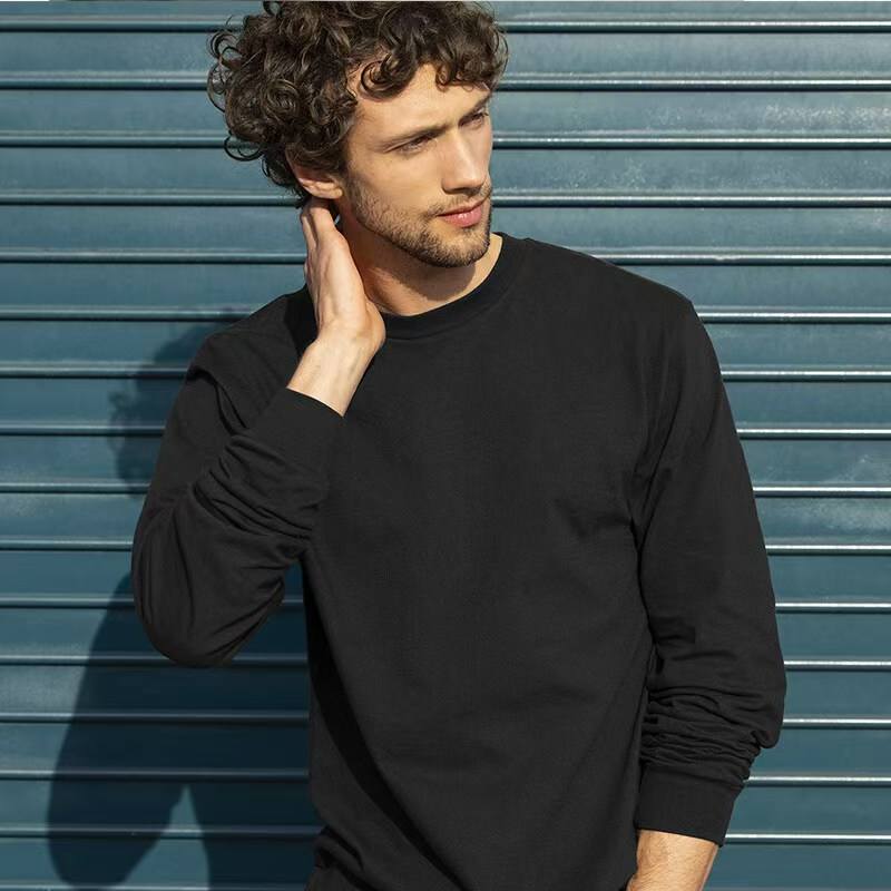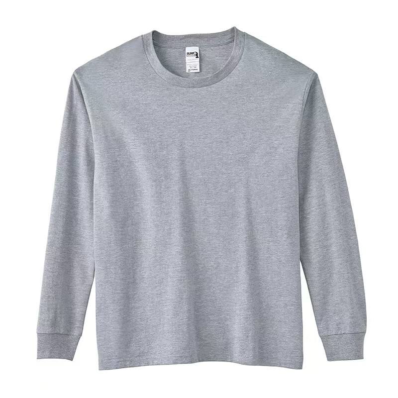 T-shirt à manches longues en coton lourd de 205 g, côtelé, uni, en coton à fibres longues, couche de base, logo personnalisé, vêtements d'automne