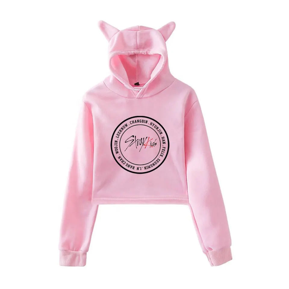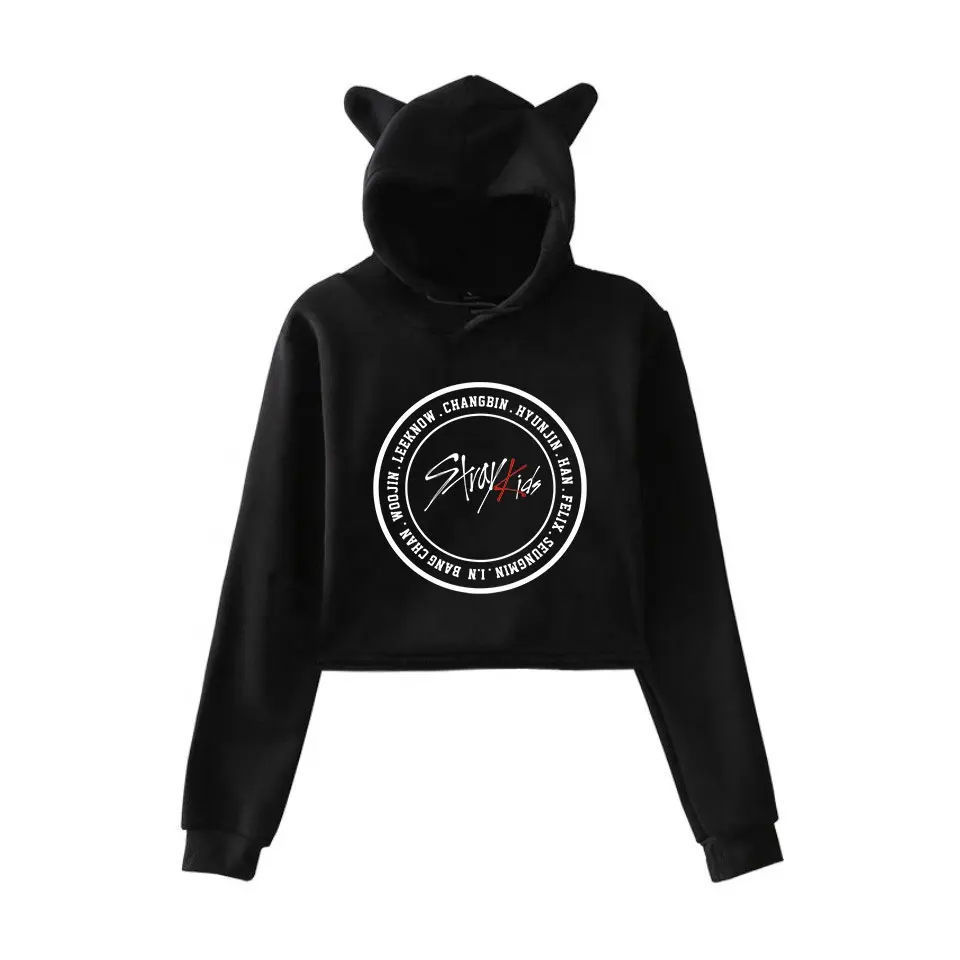 Sweat à capuche oversize pour femme, design chat 2064, coupe courte, grande taille, logo personnalisé, vente chaude, respirant, 100% coton, écologique